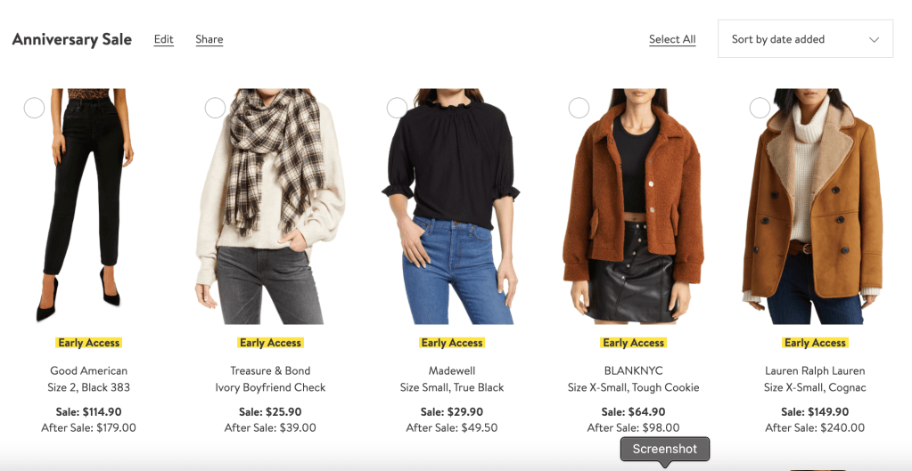 Anywho, enough being a nostalgic mush and onto the sale. First and foremost in case you’re new to it or haven’t shopped in years past to shop the sale next week/ early you have to have a Nordstrom credit card. If you don’t have one it opens to everyone at the end of July. You do what’s best for you but it does help to be a card holder as things can go quickly. Right now the preview for the sale is live and you can save the items you’re excited about to your wishlist and that’s what I’ve done below. I’ve added quite a few items but won’t purchase all of them by any means but like to have lot’s of options saved for when it’s my time to shop.