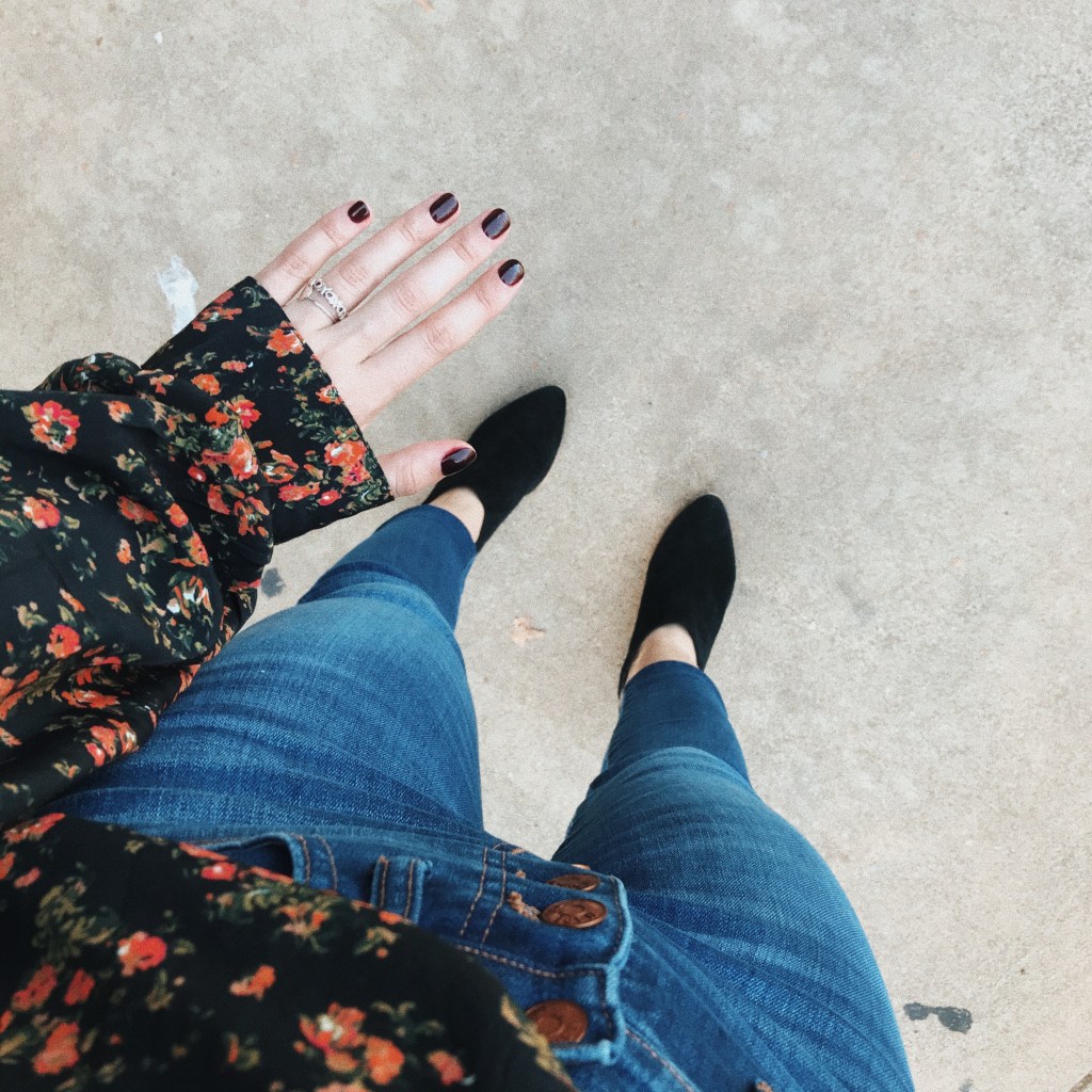 A nail favorite right now is dark burgundy or purple nails! I have been getting gel on my nails once a month and it’s one of my favorite forms of self-care. I am one of those girls that feel naked or weird without nail polish on their nails. I just really prefer them to be done, I think it honestly finishes my look haha. Does anyone feel this way too?